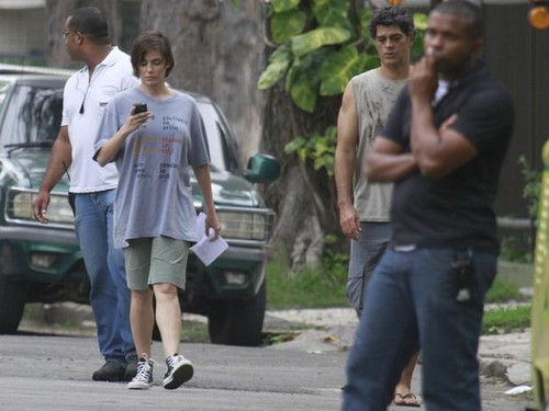 Deborah Secco e Eduardo Moscovis aproveitaram a tarde desta quinta-feira (30) para gravar o seriado Louco por Elas, no Recreio dos Bandeirantes, no Rio de Janeiro. A atriz foi fotografada usando um look despojado – bermudão, camiseta e tênis. A dupla interpreta os personagens Léo e Giovana na trama .