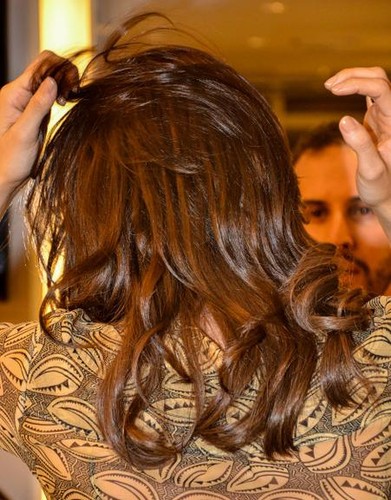 Ela fez a transformação no salão do cabeleireiro Marcos Proença, em São Paulo. Além de alongar os cabelos com megahair, Deborah pintou os fios na cor chocolate.